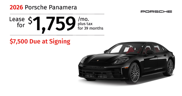 2026 Porsche Panamera . Stock #TLB00153. MSRP $129,840. $1,759/mo. plus tax 39 months lease. $ Rebate. $7,500 Total due. Includes down payment, tax, first payment, tag, acquisition fees, dealer fee, and dealer installed options, if any. $0 security deposit. Lease...Request More Info